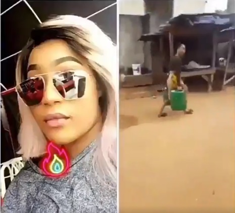 The slay queen who had reportedly lied to her friends on social media that she lives in a mansion was spotted in her local area where she was seen fetching water.