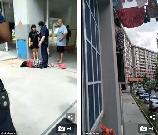 The woman, believed to be a domestic worker, was reportedly trying to fix a washing line on the third floor of the building in the town of Tampines when she fell.
