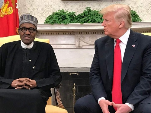 Nigerian President Muhammadu Buhari meeting Donald Trump at the White House today (Photo: Sunday Aghaeze)