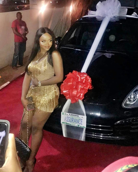 In a video clip which has since gone viral online, the singer revealed the moment she saw the car and wrote: "I give my baby ASSURANCE!!! I love you baby!! WE IN THIS 4 LIFE!! @thechefchi !! HAPPY BIRTHDAY CHIOM CHIOM !! FROM ME TO YOU!! I BOUGHT MY BABY A PORSCHE!!."