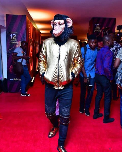 A man appears rocking a monkey-faced mask at The Headies Awards yesterday night with many unable to unravel his identity.