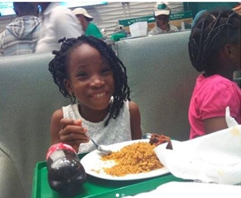 Sharing a photo of the seemingly happy girl enjoying a plate of rice and soda, she wrote: