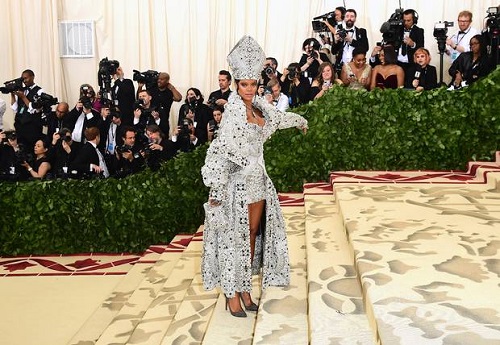 Rihanna reigned over the religious-themed Met Gala with a stunning dress inspired by the Pope. The Umbrella singer wore a heavily beaded Martin Margiela corset mini dress under a full skirt, coupled with a mitre-like hat.