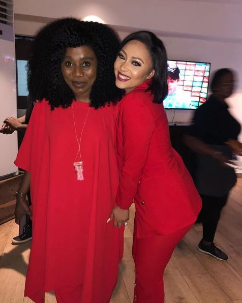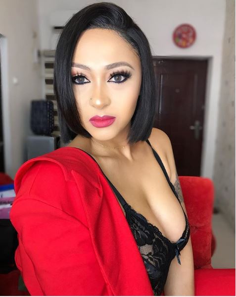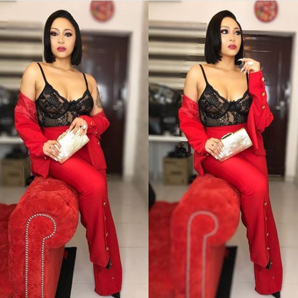 Rocking a red suit, Rosaline Meurer ditched her bra as she made a public appearance in Lagos recently.