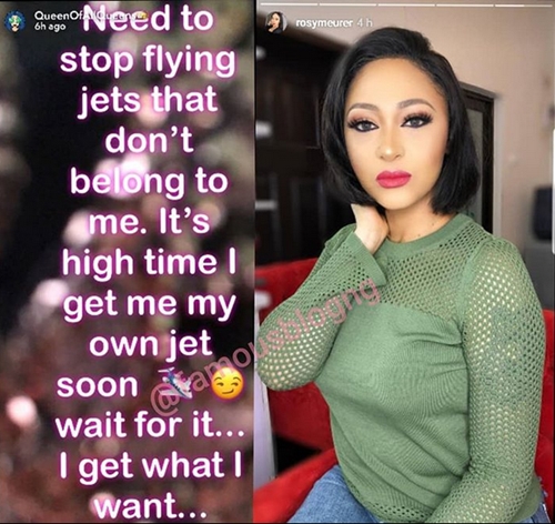 Fast rising Nollywood actress, Rosy Meurer, who was allegedly romantically linked to Tonto Dikeh's husband, Olakunle Churchill a.k.a Big Church, has bragged that she'll soon buy her own private jet.