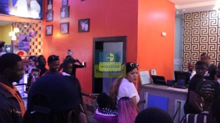 It was a dramatic moment on Saturday as BBNaija Housemates Alex And Tobi were spotted at Ikeja Mall on their knees begging actress Toyin Abraham for coming late to her movie premier 'The Ghost And Tout'.