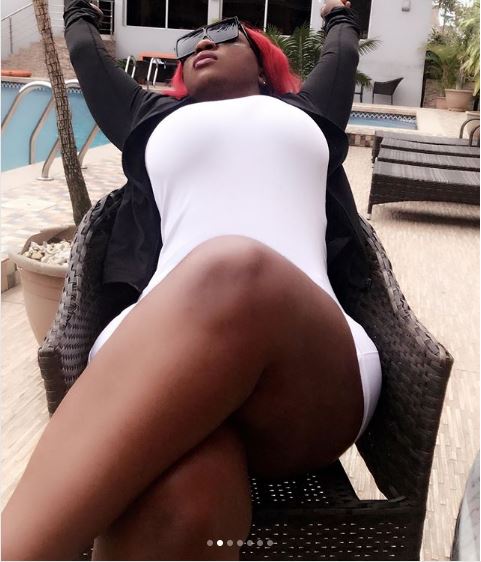 The 33-year old single woman wore a very short white knicker which enabled her to display a large chunk of flesh. The pictures have attracted flirty comments as usual from her over 270,000 fans on social media.