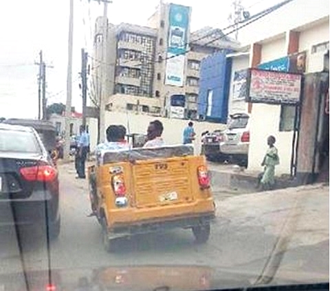 A hilarious photo making rounds on social media sees three young Nigerians allegedly spotted today in their roofless Keke NAPEP along the Opebi-Allen road, Ikeja, Lagos.