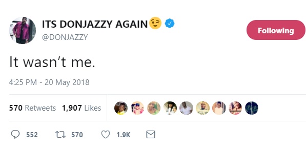 As the news broke the internet on Sunday, music producer and Mavin Records boss, Don Jazzy who many Nigerians had hoped would marry the blogger, took to his Twitter page to react, saying that he’s not the father of the blogger’s expected baby.