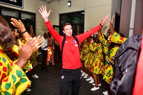 A 12 seconds video and some photos published on the Spanish LaLiga giant's, verified Twitter handle, shows the team and coach Diego Simeone's arrival and are being cheered on arrival in Uyo by fans.