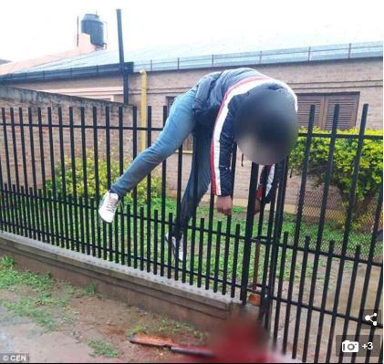 Graphic photos showed Anibal Fernandez lifeless draped over a fence in the town of General Pinedo, Argentina, after the horrific incident.