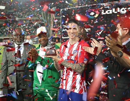 Captian Torres receiving a trophy after his Atletico team won Super Eagles 3-2