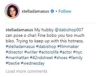 "My hubby @dabishop007 can pose o chai! Fine bobo you too much biko. Trying to keep up with this hotness." he said.