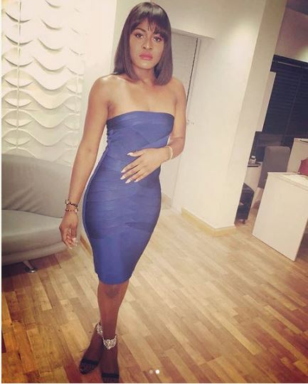 Former BBNaija housemate, Alex whose picture was leaked online with a strang man on bed together is looking appealing in off shoulder tight gown.