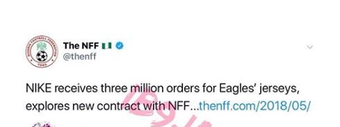 Aside Twitter, a report on the NFF's official website, www.theff.com details a meeting its leadership had with Nike's representatives in Europe on the progress of the Nike deal and other future engagements.