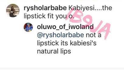 "Not a lipstick its kabiesi's natural lips" the account handler possibly replied.