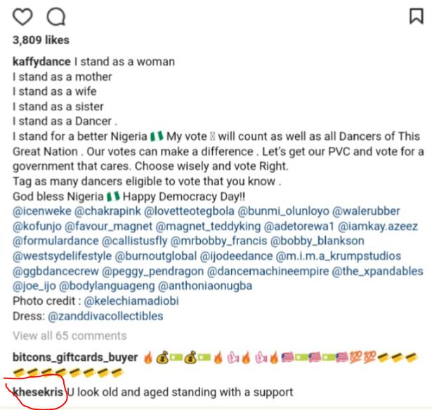 The comment of the Instagram user has gone viral. Before the attack, Dance queen Kaffy wrote on her IG page;