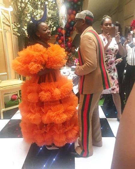 Wearing a Gucci outfit, Gbajabiamila was all smiles throughout. His wife, fondly called Sal, wore an orange Rihanna inspired dress and also had the blue version worn at the occasion.