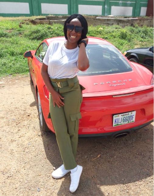 A Twitter user shared these photos of a female NYSC member who came for her clearance in a Porsche Cayman car in Abuja yesterday.