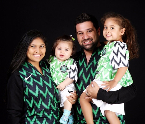 So Adorable! Nigerian Oyinbo & Family Rocking Super Eagles New Kit Turn Internet Sensation (Photos)