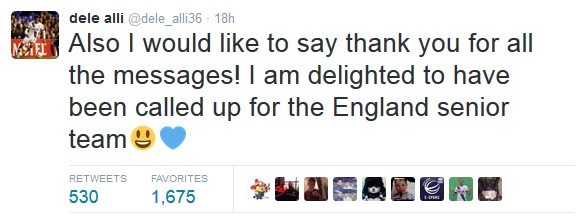 Alli will join England’s squad for the upcoming Euro 2016 qualifiers against Estonia and Lithuania.