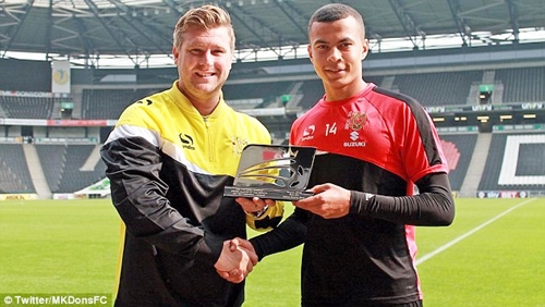 Alli looks happy to have received his award for Football League Young Player of the Month for August