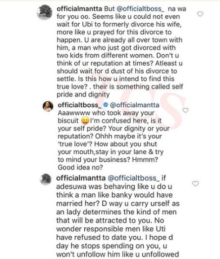 Big Brother Naija 2017 housemate, TBoss has been slammed by an Instagram user for stepping out with Triple MG boss, Ubi Franklin shortly after his official divorce to actress Lilian Esoro.