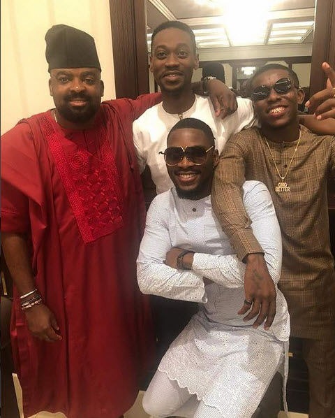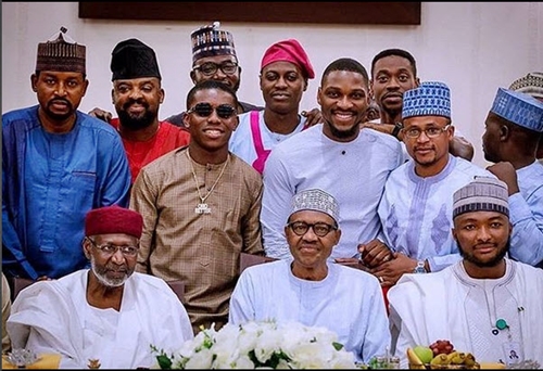 The likes of Nollywood legend, Kunle Afolayan, musicians, Small Doctor and Sound Sultan, comedian, MC Tagwaye, and reality TV star, Tobi Bakre, were part of delegation at Aso Rock.