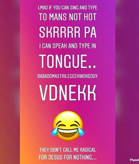 Divorcee and mother of one, actress Tonto Dikeh, has finally explained why she can speak and type in tongues after she was recently criticised on social media.