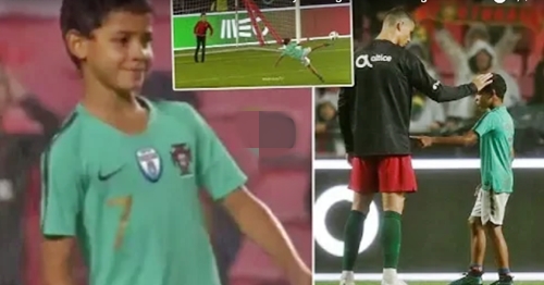 Cristiano Ronaldo's son on Thursday night, scored two excellent goals in Lisbon, as the youngster showed the crowd that he has the same skills with his star father