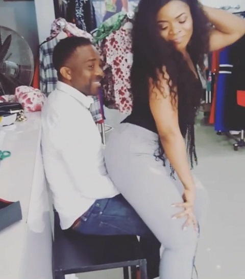 The fashion entrepreneur who has a baby boy with her hubby, the younger brother of famous Super Eagles star, Kanu Nwakwo, was captured on camera twerking fo Ogbonna, who was sitting on a chair inside her fashion store.