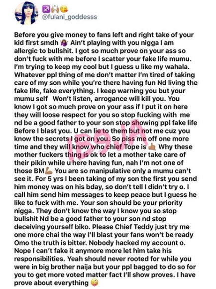 They don’t know the way I know you so stop bullshit Nd be a good father to your son nd stop deceiving yourself biko, Nobody hacked my account o”