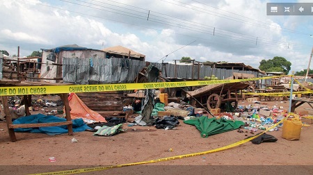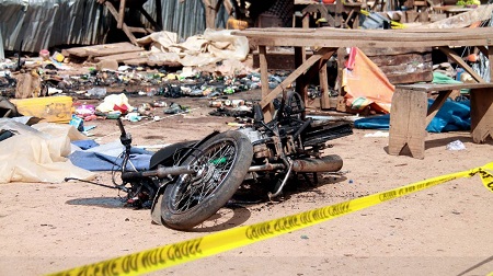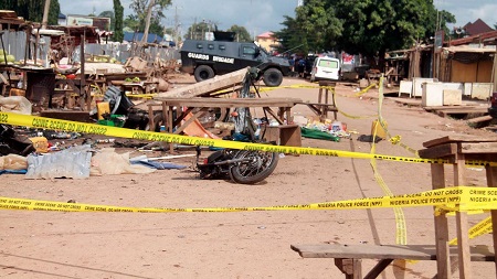 Mr. Gabriel, who said he normally slept inside his stall at the market, reported “a loud sound that shook the ground, and a huge fire in the sky.” As he emerged from his shop, he saw people “running helter-skelter. I could not go [in the direction of the blast] because people were running away from the scene. But when I managed to get to the vicinity of the attack, I could not believe what I saw. I saw bodies of human beings scattered all over the ground. Hands and legs were cut off, human flesh scattered all over the area.