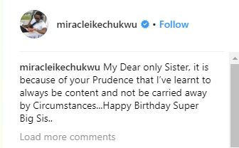 "My Dear only Sister, it is because of your Prudence that I’ve learnt to always be content and not be carried away by Circumstances...Happy Birthday Super Big Sis.." he captioned a beautiful photo of her.