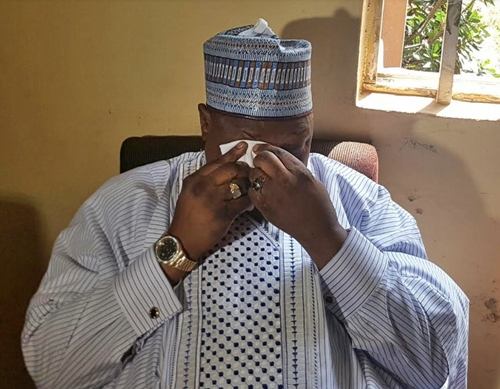 The above photo of convicted former governor of Plateau State, Joshua Dariye, which was exclusively posted by PREMIUM Times, was captured moments after the politician asked the prosecution to tamper justice with mercy at his trial on Tuesday.