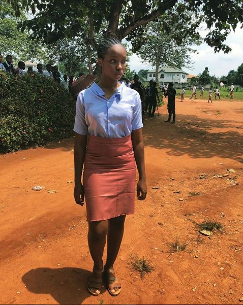 The 29-year old singer, actress and entrepreneur who is playing the role of a school girl named Amaka looked like a naive teenager in the picture.