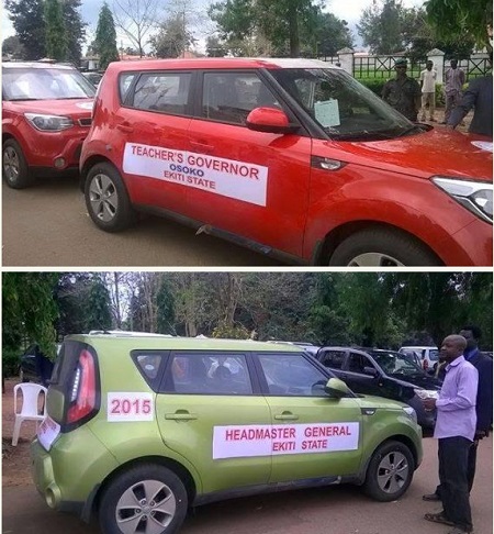 He keep surprising his critics and those who have declared themselves his enemies. Ekiti state governor, Ayodele Fayose presented cars as gifts to some teachers in the state.