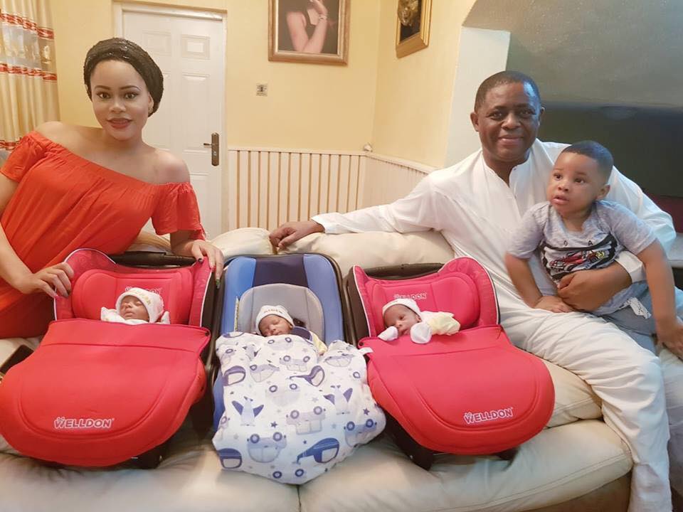 Femi Fani-Kayode has taken to Facebook to share adorable photo of his family including his triplets after they returned from the hospital.