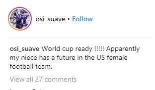 "World cup ready !!!!! Apparently my niece has a future in the US female football team" he said.