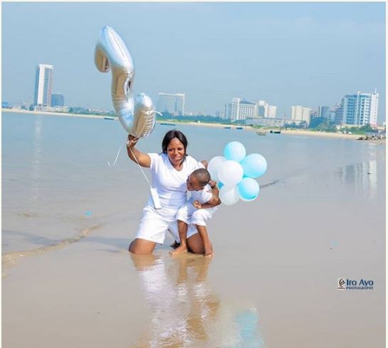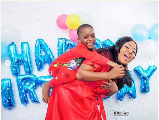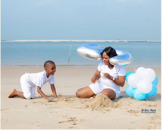 Yoruba actress Liz Dasilva Ajokeade celebrates her son, Abefemi as he turns 5 today, 16th, June 2018.
