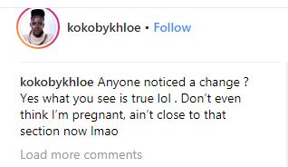"Anyone noticed a change ? Yes what you see is true lol . Don’t even think I’m pregnant, ain’t close to that section now lmao"