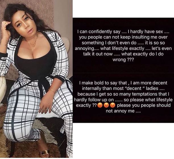 She explained that she hasn't been having regular s*x as she challenges her followers to debate the issues of her perceived indecency with her.