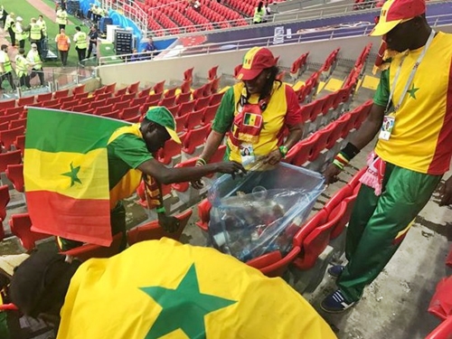 After Senegal defeated Poland 2-1 in their first World Cup clash, their fans stayed behind to voluntarily clean up the mess they had made at their part of the stadium on Tuesday.
