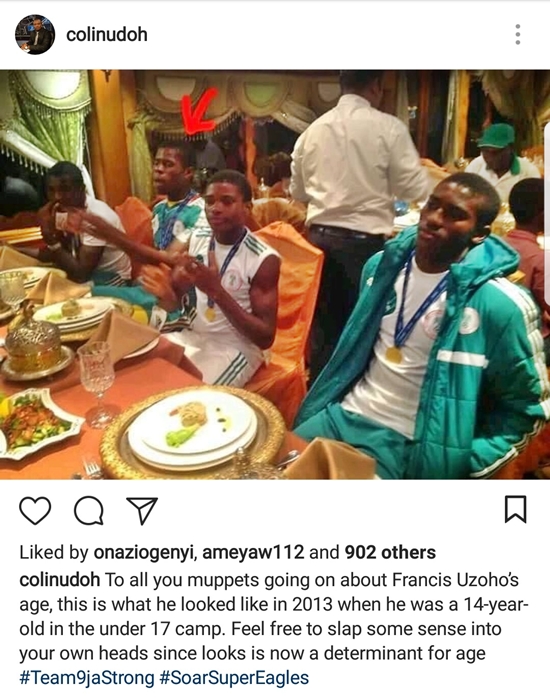 Former Super Eagles media officer, Colin Udoh, has now taken to his Instagram to slam those questioning Uzoho's age as he addresses the controversy surrounding the age of the goalkeeper, who is the youngest player at the ongoing 2018 World Cup