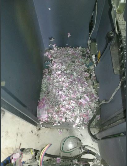 Technicians who took the unit apart found banknotes of 2,000 and 500 rupee denominations destroyed. They managed to salvage another 1.7m rupees, officials said.