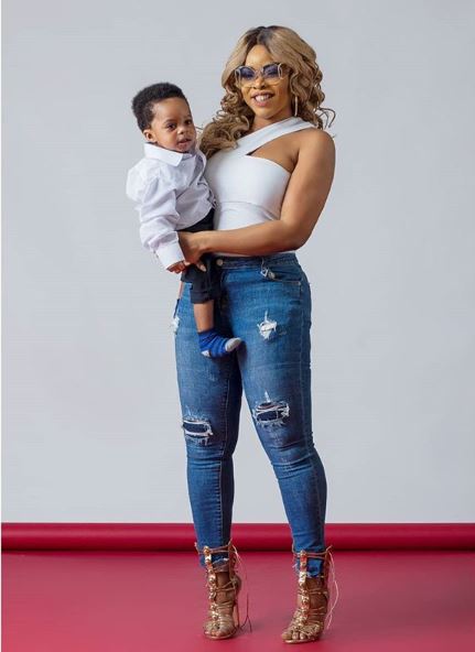 Her boy seems to be growing up fast and he shares similar looks with his father who is the younger brother of legendary footballer, Nwankwo Kanu.
