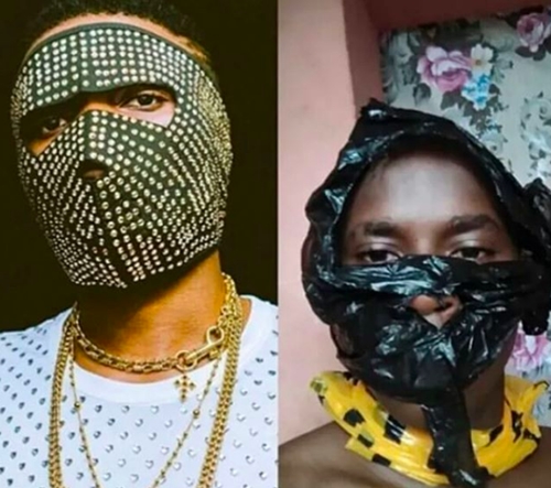 A young Nigerian man has gone ahead to recreate Wizkid's iconic face mask photo which the singer took at the 2018 Milan fashion week.