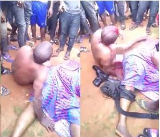 Anambra Police Officer Stripped Unclad After Accidentally Killing Woman Inside Popular Market (Photos)