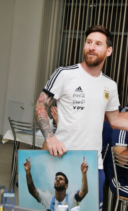 The official Twitter page of the team, @Argentina, took to the social networking platform to share photos from the party held on the player's honour at their football camp in Russia.