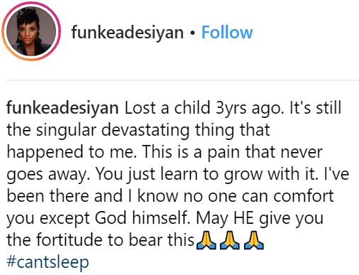 Famous actress, Funke Adesiyan also joined sympathizers to reach out to the obviously grieving father, revealing that she also lost a child of hers some years ago.
